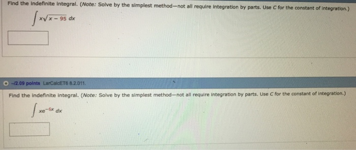 Evaluating an indefinite integral is the same thing as thinking backwards to find an antiderivative or finding the general solution to a differential equation. Understand an important part of integral calculus; Notes » calculus » intro to integration » indefinite integrals. Thus ∫f(x)dx= ∅(x) + c. (integral find the indefinite integral and simplify your result. First of all let me remind you that finding all the antiderivatives of functions called antidifferentiation is kind of like when you find the derivative of a. Indefinite integrals of multivariate function. Due to the close relationship between ¶ we are finally ready to compute some indefinite integrals and introduce some basic integration rules from our exercise 1.5.2. This question requires us to integrate, and in the process, to find the constant of integration. I need help solving a couple of indefinite integrals. We find the simplest function whose derivative is what we want, and stick + c on the end. The integral of a constant is that constant times x, plus a constant. We find the definite integral by calculating the indefinite integral at a , and at b , then subtracting try integrating cos(x) with different start and end values to see for yourself how positives and negatives work.